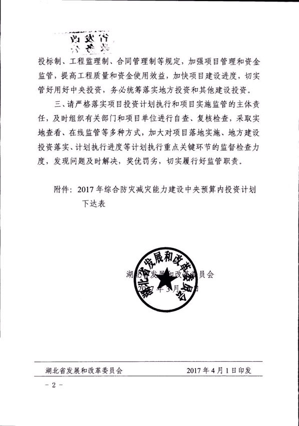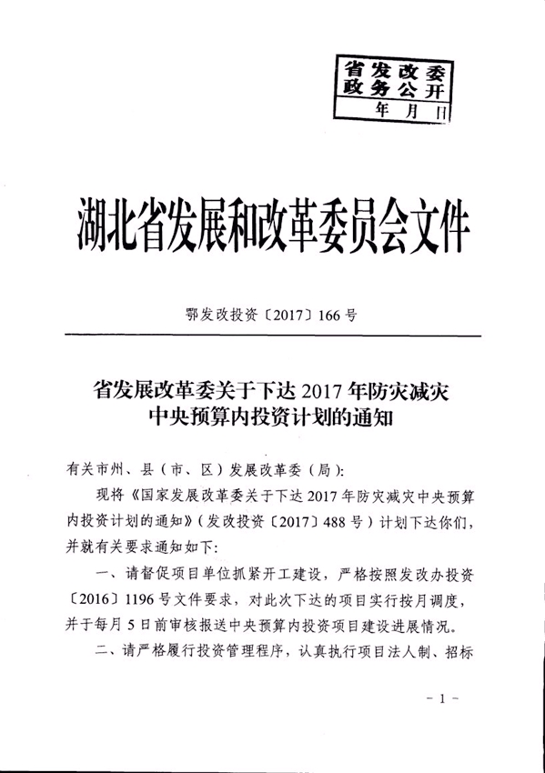 省發(fā)改委關(guān)于下達(dá)2017年防災(zāi)減災(zāi)中央預(yù)算內(nèi)投資計(jì)劃的通知